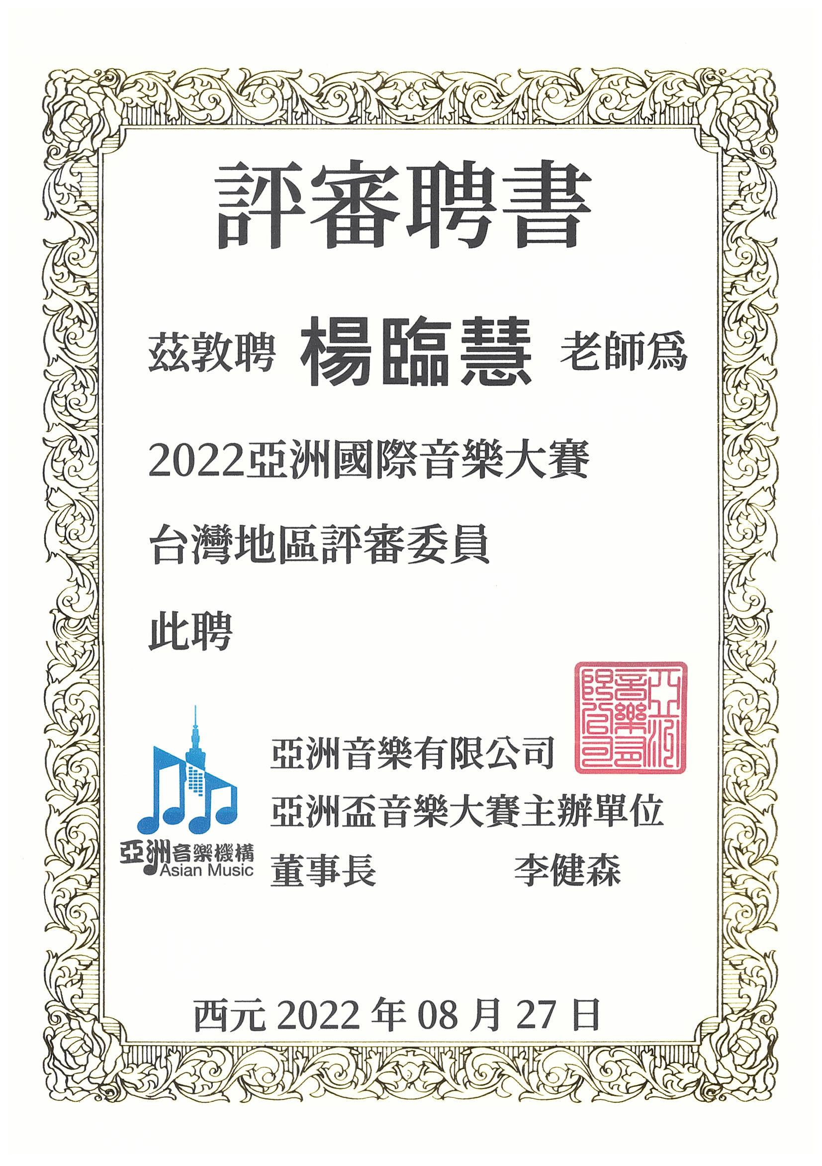 亞洲國際音樂大賽台灣地區評審委員
