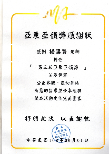 亞東科技大學 亞韻獎 歌唱比賽評審