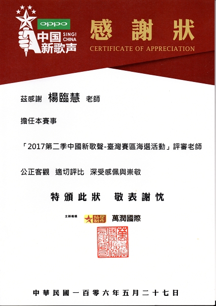 楊臨慧 老師/歌唱評審